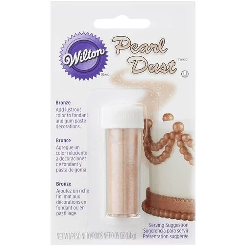 Los polvos comestibles "Pearl Dust de Wilton" dan brillo a tus flores, masas, cookies, letras, bombones, etc.. Ideal para un bonito acabado en tus decoraciones de fondant, chocolate o pasta de goma.