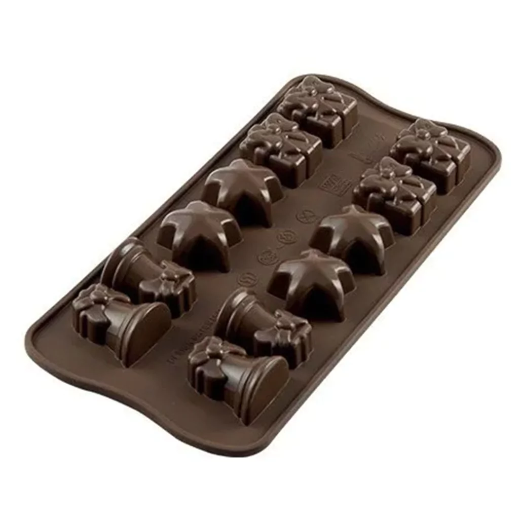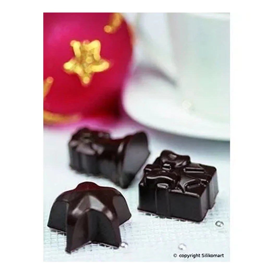 Christmas, de la gama Easy Choco, es el molde que te permite crear bombones temáticos navideños en forma de regalos, campanas y estrellas navideñas. El molde Christmas te permite hacer 12 chocolates por molde. Dentro del paquete encontrarás una receta muy útil para crear chocolates perfectos.